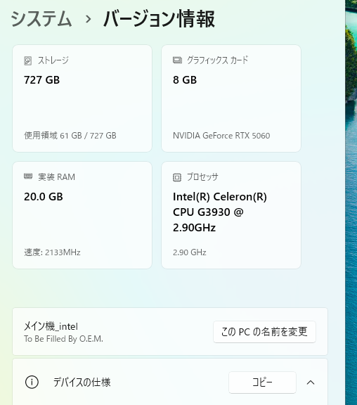 メイン機が今諸事情によりデスク版intel7世代最弱といっても過言ではないレベルのCeleronG3930が乗っているものでとてつもないボトルネックになってしまいました。